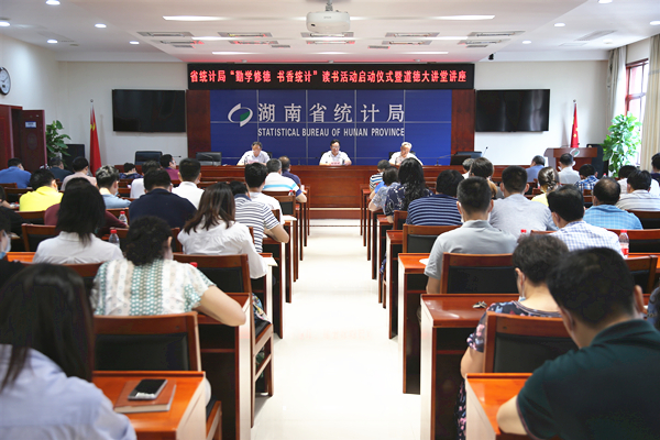 6月22日,省统计局举行“勤学修德 书香统计”读书活动启动仪式暨道德大讲堂讲座。党组书记、局长刘崇斌出席并作重要讲话。