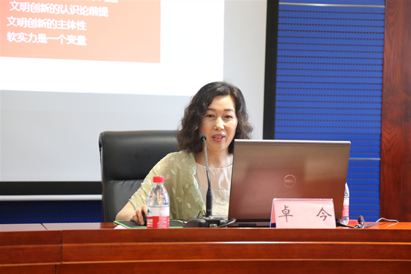 启动仪式后,省社会科学院文学研究所所长、研究员卓今应邀作了题为“文化的力量——谈中西文化差异与文化自信”讲座,为全局干部职工带来了2020年道德大讲堂第一课。(省统计局 供稿)