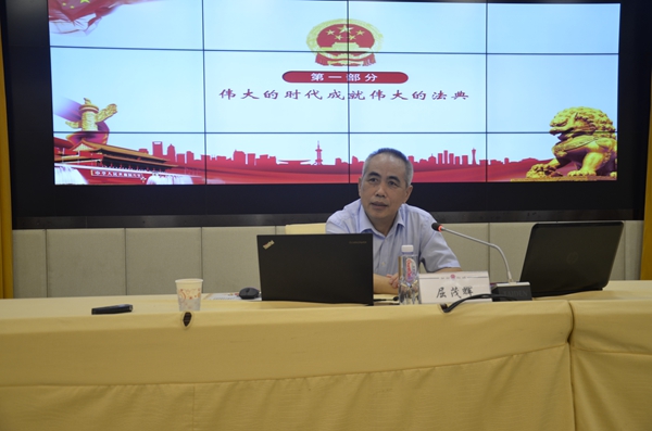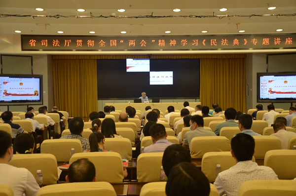6月12日,省司法厅举办贯彻全国“两会”精神和学《民法典》专题讲座,邀请湖南大学法学院院长屈茂辉教授作民法典专题辅导。司法厅党组书记、厅长范运田等厅领导出席,“两局一院”班子成员及厅机关全体干部职工近200人参加。