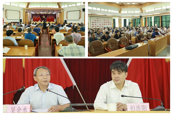 6月8日,省农科院党委理论学习中心组进行2020年第六次集中(扩大)学习,专题传达学习2020年全国“两会”精神,邀请十三届全国人大代表、中国科学院亚热带农业生态研究所吴金水研究员作专题报告。院党委书记柏连阳主持会议。在家院领导、全院副处级以上干部、院属各基层党支部(总支、党委)委员和机关全体党员参加会议。