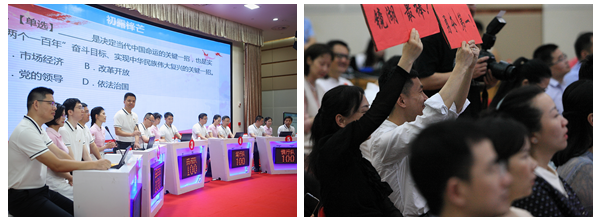 竞赛形式设置为通俗易懂的必答、抢答、简答,把习近平新时代中国特色社会主义思想、习近平总书记系列重要讲话和指示批示精神、党的十九届中央历次全会精神、党纪党规等竞赛内容转变成联系实际的鲜活教材,使大家在积极参与的过程中不断巩固学习成果。赛场上,选手们反应敏捷、从容自信,比赛跌宕起伏、扣人心弦,互动答题环节观众积极参与、踊跃抢答,彰显了党员们过硬的政治素质和较强的党性意识。