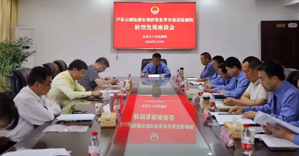 近日,省检察院党组副书记、副检察长卢乐云到张家界永定区人民检察院召开座谈会,专题调研基层人民检察院党建工作与检察业务工作融合及转型发展情况。省检察院法律政策研究室副主任刘拥,张家界市人民检察院党组书记、检察长罗树中等陪同调研。
