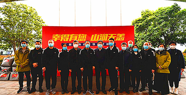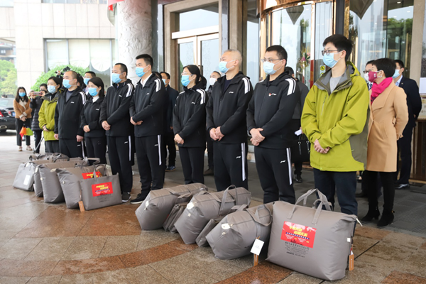 4月2日上午,响应湖南省直工委倡议开展的“微光大义·致敬白衣天使”志愿服务活动,省政协办公厅、省政协经济科技委员会、省委统战部、省工商联携手湖南省山东商会、湖南省湘商公益基金会、故园家纺联合开展的“慰问湖南援鄂医务人员”暖心活动,在医务人员返湘集中隔离的世纪金源大酒店前坪举行。省政协党组成员、副主席戴道晋,省政协副主席、省工商联主席张健,省政协秘书长卿渐伟出席捐赠仪式。