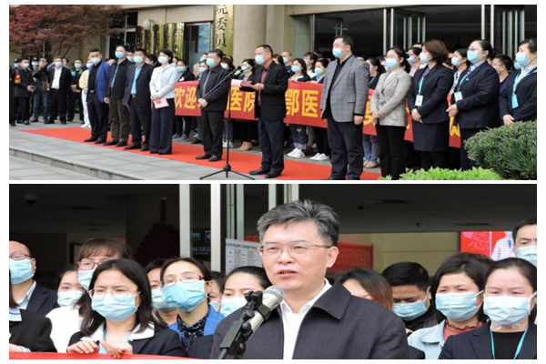 仪式上,黄惠勇书记表达了对医疗队的崇高敬意,充分肯定了泰和医院在新冠疫情防控工作中的责任与担当。他指出,泰和人有坚定的党性与情怀,尽管新冠肺炎病毒无情,但泰和勇士们有情有义,充分体现了医院报效国家、服务人民的责任担当。希望泰和医院把研究新技术、发展新学科作为奋斗的方向,积极推进医院党建工作,凝心聚力跟党走,在党和政府的领导下,将医院办成民营医院的标杆,让患者满意,让社会满意。