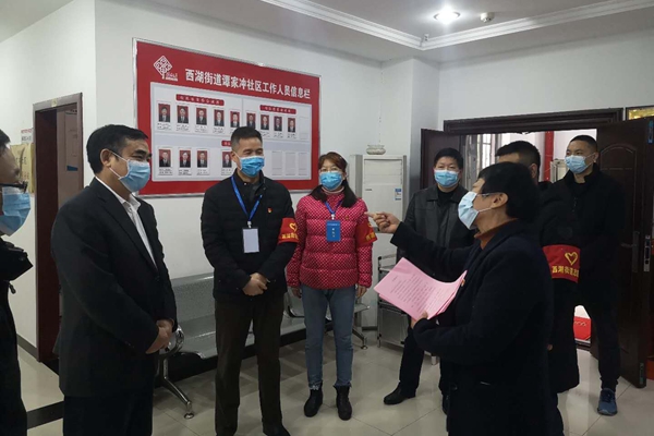 为深入贯彻落实习近平总书记关于坚决打赢疫情防控阻击战一系列重要指示精神,全面落实党中央、国务院和湖南省委决策部署,指导省人防办派驻岳麓区谭家冲社区防疫联络组工作, 3月9日,省人防办党组成员、副主任罗国辉一行,到防疫防控一线省人防办防疫联络组对口单位谭家冲社区进行检查,指导防疫联络组科学应对新冠肺炎疫情防控工作。