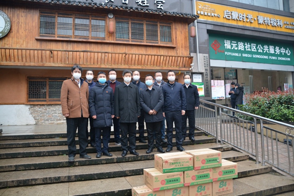 3月6日,省社会科学院党组书记、院长李荐国带领相关职能处室的负责人,深入福元路社区防疫一线的值守点和卡点,看望慰问我院下沉社区参与疫情防控的党员干部,详细了解近日来社区防疫工作开展、人员轮班值守、社区人员排查等情况,对防控一线的工作人员坚守岗位、辛勤付出表示感谢,并为社区带去了口罩、消毒液等防护物资。