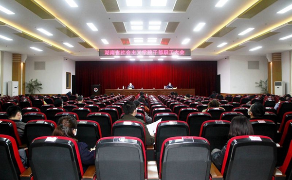 3月5日,省社院召开干部职工大会,统筹推进部署学院疫情防控工作和2020年社院工作安排。省委统战部副部长、院党组书记邓焕生主持,院长雷鸣强作2020年春季开学报告。院领导彭英、黄自荣、洪真健、周述杰、彭仕敏以及全体职工参加会议。
