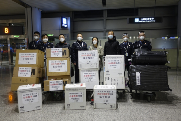2月26日8时10分,历经10个小时的飞行,结束欧洲巡演的湖南杂技《欢乐中国年》团队抵达上海浦东机场,将山东永华公司在德国筹集的10箱价值100多万元的医用防护服交给该公司的工作人员。为运送这批物资,这些平均年龄才17岁的杂技演员,扔掉了行李箱里原本满满的巡演行李和给家人的礼物。