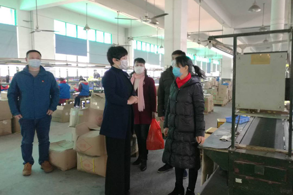 图:2月10日,益阳市委副秘书长、市委台办主任郭腊云走访桃江凤冠电机有限公司,在市委台办的主动帮助下,台企桃江凤冠电机有限公司恢复生产。