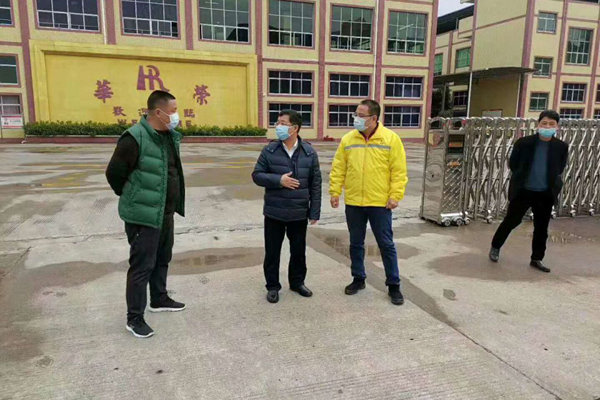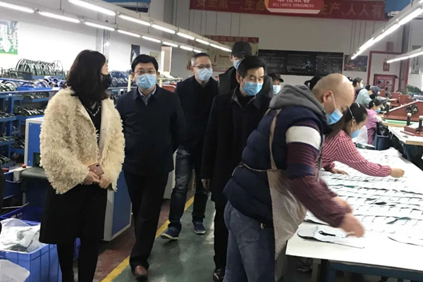 图:宁远县委书记刘卫华(左二)深入台企华荣鞋业调研复工情况