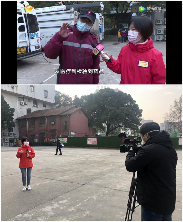 像电视媒体一样,记者出身的她也在新闻的第一现场,医院、车站、社区都有她的身影。不同的是,她没有摄像师,全程都是一个人,拿着手机、稳定器、收音器,用最简单的设备,完成采访、直播和拍摄。现场完成了图片和视频采集后,还要第一时间整理和发送出消息。在疫情期间,更是自己一人全程完成,回来再仔细消毒,十多天里,连孩子都不敢拥抱。