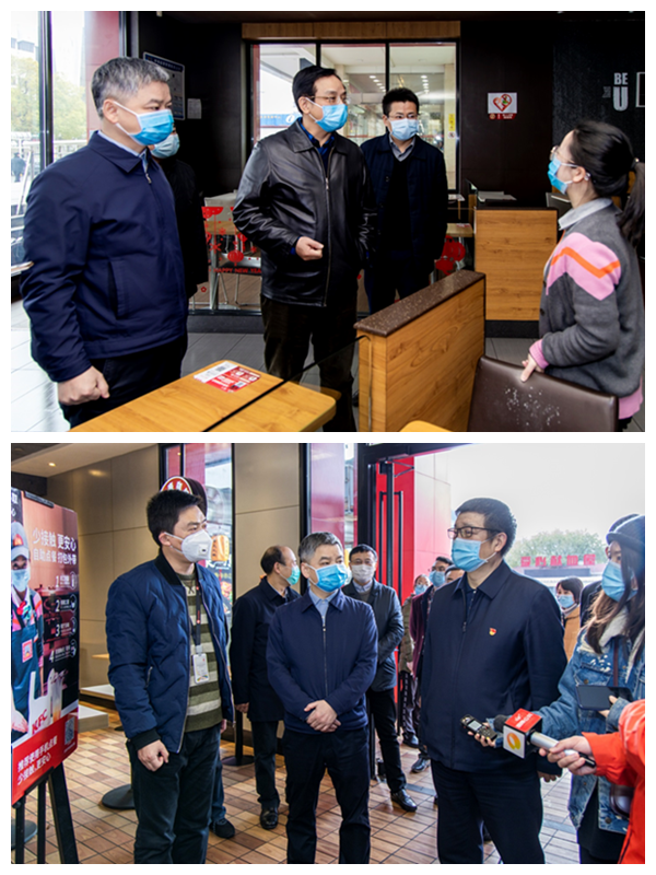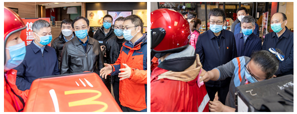 督查组一行先后对长沙阿波罗商业广场、麦当劳阿波罗店、饿了么外卖配送站点、美团外卖配送站点、长沙乡村基餐饮有限公司红星分店、长沙肯德基有限公司红星店等6家餐饮单位的食品安全保障工作进行督查。督查组对食品原材料的进货、食品制作加工,特别是防疫期间门店、员工以及食品的消毒工作进行了详细的检查指导,对检查中发现的问题及时反馈并要求限期整改到位。