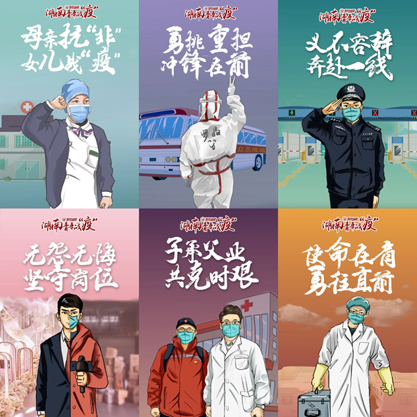 团省委、省青年志愿者协会发布《湖南青年志愿者开展疫情防控应急志愿服务倡议书》以来,积极响应的青年志愿者与日俱增。在战斗“疫”线,青年文艺工作者用歌曲、诗歌、快板等艺术形式抗疫;青年学生用海报、漫画、短视频等方式,在疫情防控宣传战线上,留下了自己的足迹。在官方微信“青年湖南”推出百余张原创战“疫”海报,致敬最美“逆行者”。