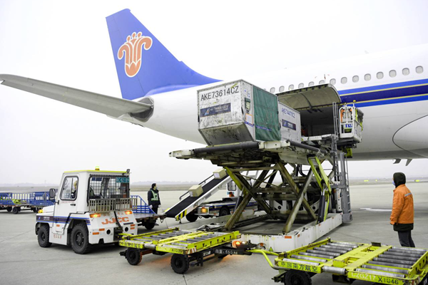 图:南航CZ6044航班顺利将1019件5751公斤境外防疫物资从内罗毕抵达长沙