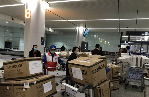 图:湖南省红十字会、中南大学湘雅医院派出专人直接在机场接收该批物资