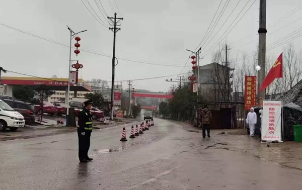 图:岳阳交通工作人员在引导车辆有序检疫