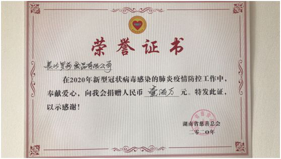 图:2月4日 罗莎食品向湖南省慈善总会捐款100万元专项用于湖南省疫情防控