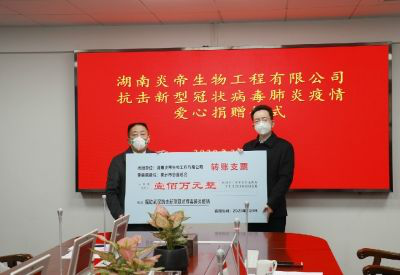 图:2月4日 湖南炎帝生物工程有限公司向株洲市慈善总会捐赠100万元直接用于武汉防疫一线