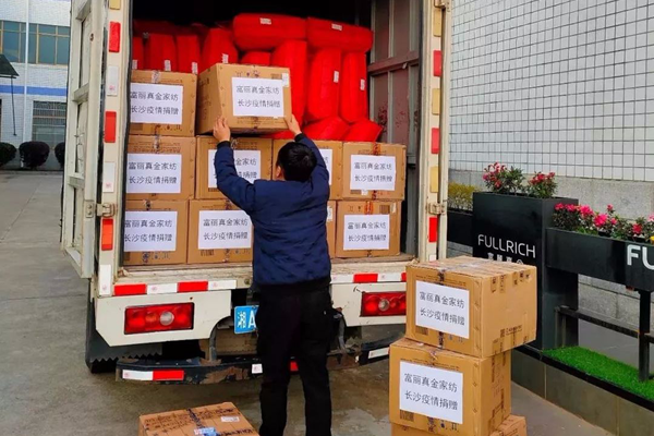 图:1月29日 富丽真金家纺向长沙县一医院捐赠345套床上用品等物资