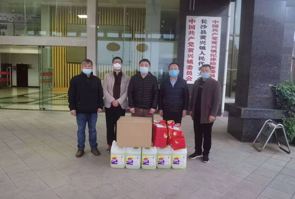 图:2月1日 长沙县黄兴海峡两岸青年农创基地向长沙县一医院医务人员捐赠口罩10000只;向工作在防疫抗疫一线的长沙县干部职工捐赠了价值5万元的一次性口罩和84消毒液