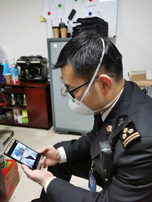 “在外面排查一下,不要进来!”1月24日,大年三十晚,长沙黄花机场海关关员王勃维、张贻旺在负压隔离室对一名有发热症状的重点旅客开展流行病学调查,因隔离室内电话对讲均无信号,两人隔着玻璃门用字条与同事沟通排查处置情况并提醒注意防护,连续忙碌近5个小时。为排除感染可能,处置完后又自我隔离在宿舍,直到1月31日重新奔赴战斗岗位。