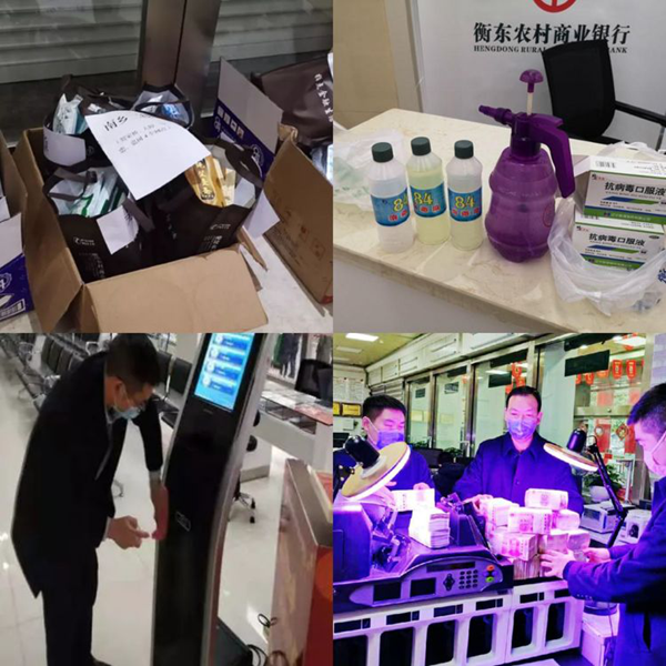 2.严格管理,营造良好服务环境。疫情期间,各农商银行严格按照突发公共卫生事件一级响应防控措施要求,强化营业网点、办公场所的卫生防疫管理,统一购置医用口罩、消毒液、酒精棉片等杀菌物品,确保柜面人员全部佩带口罩上班;加强对各营业网点消毒,实行全面的日间消毒和日终消毒,对收到现金进行全面的紫外线消毒,增加柜台内外、自助机具等的消毒次数,为客户提供清洁卫生、安全放心的服务环境。