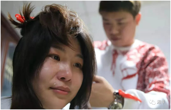 南华大学附属第二医院成立临时党支部,在湖北省黄冈市召开党支部会议。支部党员尹艳是一名刚订婚不久的年轻护士,本来打算年后去拍婚纱照。她第一时间报名并如愿出征,含泪剪发的照片感动了很多人。“我们到达前线要长时间穿防护服,剪短头发方便工作。婚纱照可以等头发长长再照。”