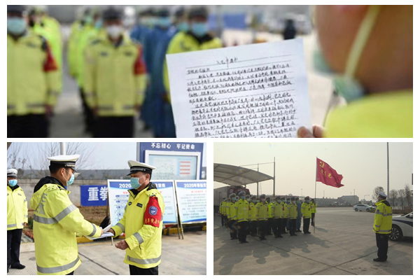 1月27日,在二广高速城头山入省检查点,高警局常德支队澧县大队举行了“党员亮身份 青年争先锋”动员大会,动员全警持续发力,在大队党员先锋队的带动、鼓舞下,十名非党员民警向党支部正式递交了自己的入党申请书,表达自己加入党组织的理想和愿望。疫情当前,用党员交警的标准要求自己,全心全意为人民服务!