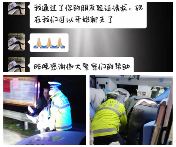 1月27日23时许,省高警局衡阳支队石鼓大队民警在衡东服务区巡查时,突然一男子背着一名孕妇匆匆赶到警车前求助。这名孕妇不小心摔倒在服务区的水沟处,导致腿脚摔伤,流血不止,并且伴随着腹痛。民警考虑到泉南高速衡东服务区离最近的县级医院有30多公里远的距离,便当机立断驾警车将孕妇送到就近的衡东收费站,同时拨打衡东县120急救电话联系医院派救护车赶到收费站接治。救护车到达衡东收费站,为节省时间,民警直接将受伤的孕妇小心翼翼得抱上救护车,甚至跪在救护车上协助医护人员转移孕妇。