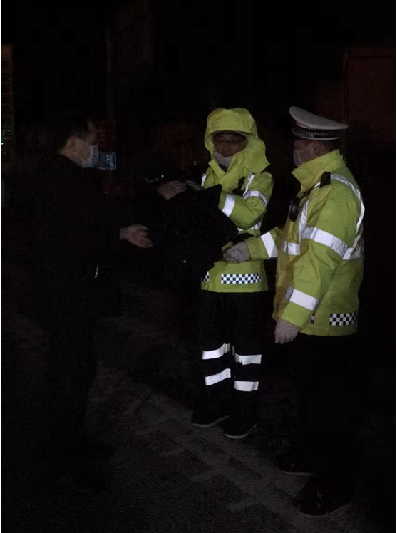 28日凌晨,邵阳洞口交警大队的交警们还在执勤,交管中队长周维胜、指导员刘四清将自己的多功能防寒服送到执勤点位夜班兄弟们手上。“在一线默默付出,要保护好自己!”