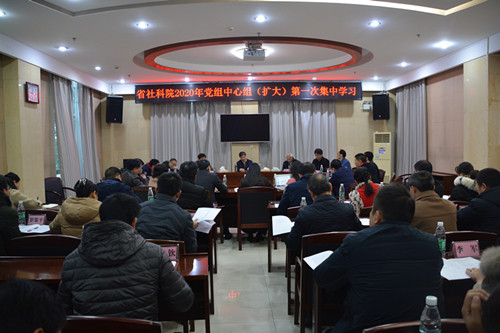 1月3日上午,党组书记、院长李荐国主持2020年党组中心组(扩大)第一次集中学习。院领导贺培育、刘云波出席会议,全院副处(实职)以上干部参加学习。此次学习的主题为“深入学习领会中央和省委经济工作会议、习近平总书记在中央政治局第十九次集中学习时的讲话以及在中央政治局专题民主生活会上的讲话精神”。