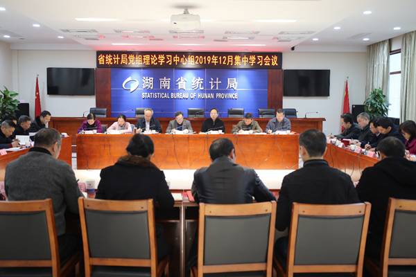 局领导传达了中央和省委经济工作会议精神,领学了习近平同志在中央政治局第十九次集体学习时的重要讲话精神,传达学习了《中国共产党宣传工作条例》《中共中央办公厅关于印发〈干部选拔任用工作监督检查和责任追究办法〉的通知》《中共湖南省委〈关于深入学习贯彻党的十九届四中全会精神为加快建设富饶美丽新湖南提供有力制度保障的决议〉》《国家统计局转发中央纪委办公厅〈关于加强统计领域数字造假问题监督执纪问责工作的通知〉的通知》《关于衡阳市住房保障服务中心主题党日活动违反中央八项规定精神问题的通报》。同时,还对中央关于统计工作的《意见》《办法》《规定》等重要文件进行了再学习。