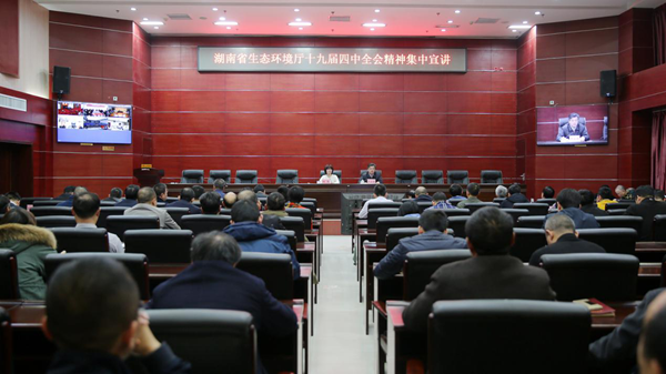 为进一步深刻领会和全面贯彻党的十九届四中全会精神,近日,省生态环境厅组织党的十九届四中全会精神集中宣讲,邀请省委宣讲团成员、省直机关工委副书记伍英到会宣讲。厅党组书记、厅长邓立佳主持宣讲会。