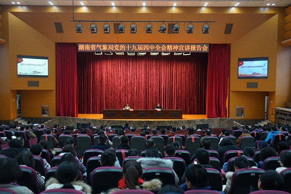 12月20日下午,湖南省气象局组织召开党的十九届四中全会精神宣讲报告会。报告会邀请省直机关工委副书记、省委宣讲团成员伍英作专题宣讲,省气象局党组成员、纪检组组长潘志祥主持。