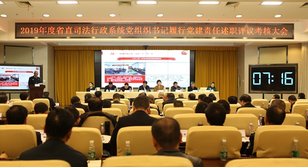11月29日上午,省司法厅召开2019年度省直司法行政系统党组织书记履行党建责任述职评议考核大会。这是厅党组连续3年来,充分发挥党建考核“指挥棒”作用,贯彻落实中央、省委机关党的建设工作会议精神,推动全面从严治党向纵深发展向监所基层延伸的重要举措。厅党组书记、厅长范运田出席会议并讲话,厅党组成员、副厅长方华堂主持会议。