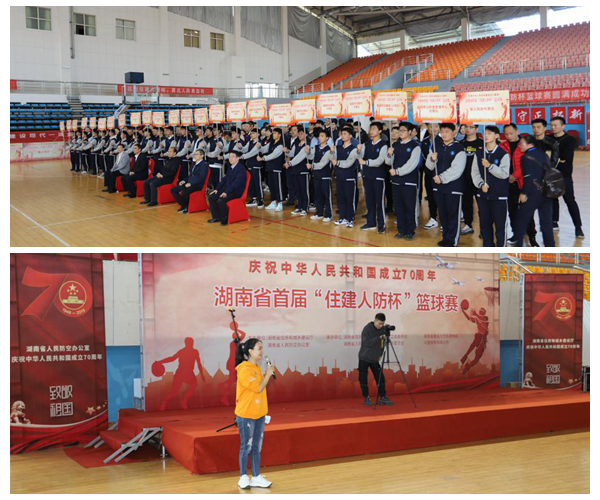 11月15日上午,庆祝中华人民共和国成立70周年湖南省首届“住建人防杯”篮球决赛暨颁奖闭幕仪式在长沙理工大学云塘校区体育馆举行。
