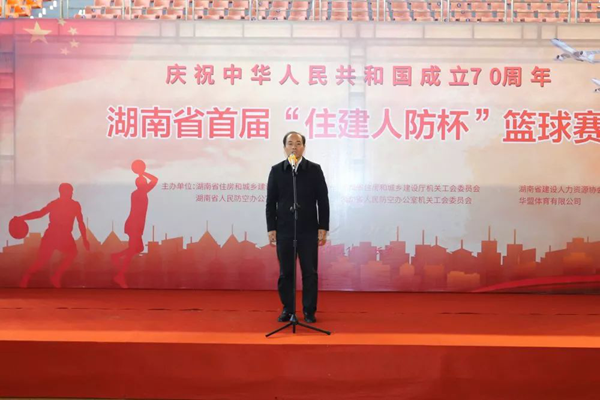 最后,省住建厅党组副书记、副厅长舒行钢宣布庆祝中华人民共和国成立70周年湖南省首届“住建人防杯”篮球赛闭幕。
