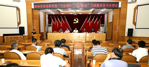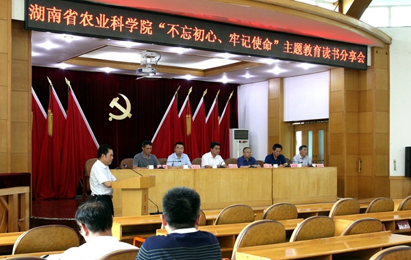 8月9日下午,省农科院举办“不忘初心、牢记使命”主题教育“改作风、勇担当、带头真抓实干”主题读书分享会。院党委书记柏连阳主持读书分享会议并讲话,院领导,全院副处级以上干部参加读书分享。