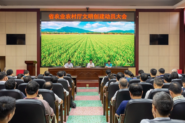 8月1日上午,省农业农村厅在机关礼堂召开文明创建工作动员大会。会议紧紧围绕创建2020年省文明单位目标,认真总结2018年文明创建工作成绩,深入查找存在问题和差距,全面部署2019年工作任务和工作要求,隆重表彰厅文明处室、“五好文明家庭”、优秀志愿者、优秀志愿服务团队、五四红旗团委、优秀青年干部、青年岗位能手、优秀团干部等先进单位和个人,激发了全厅上下奋力开创文明创建工作新局面的精神动力。厅党组副书记、副厅长陈冬贵同志作了动员讲话,厅副巡视员袁正乔同志主持会议,厅机关全体干部、捆绑创建单位的主要负责人和联络员、独立创建单位的分管负责人参加会议。