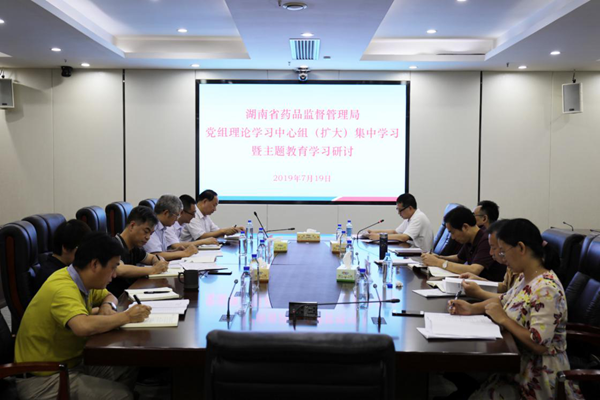 7月19日,湖南省药监局党组开展“不忘初心、牢记使命”主题教育集中学习研讨,推动主题教育高质量深入开展。学习研讨由局党组书记、副局长梁毅恒主持,省委第三巡回指导组刘志信副组长、邹思捷同志莅临指导。局党组理论学习中心组(扩大)成员参加学习。
