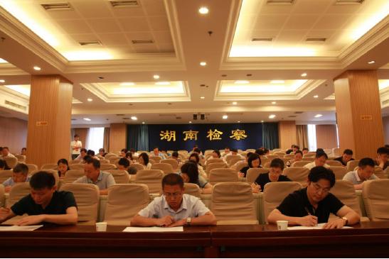 根据省委主题教育巡回指导组的部署,7月19日上午,省检察院组织院领导班子成员、厅级干部和院机关、国家检察官学院湖南分院、长沙铁路运输检察院处级以上党员干部,包括四级以上高级检察官、二级以上检察官助理、二级以上书记员中的党员干部参加主题教育学习考试。