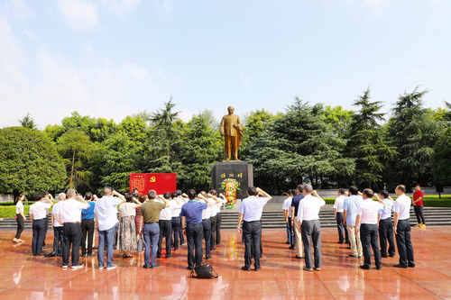 7月17日上午,省教育厅、省委教育工委赴任弼时纪念馆开展“不忘初心、牢记使命”主题教育,图为在任弼时铜像广场重温入党誓词