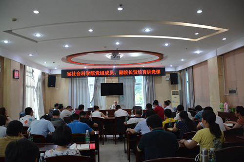 7月16日上午,根据省社会科学院“不忘初心、牢记使命”主题教育活动工作安排,副院长贺培育为机关党委(含机关纪委)党支部、人事处党支部、后勤与财务处党支部、文献信息中心(图书馆)党支部、经济研究所党支部、历史研究所(含湘学研究院)党支部、文学研究所党支部、产业经济研究所党支部的党员们讲专题党课。本次党课主要以关于“不忘初心 牢记使命”的主题理解与践行进行展开。