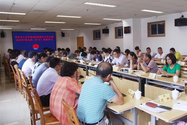 7月17日下午,召开院党组理论学习中心组(扩大)集体学习会。会前,开展了主题教育自学成果检测。会上,院领导领学了习近平总书记在中央政治局第十五次集体学习时的讲话等近期习近平总书记重要讲话和指示精神,以及《习近平关于“不忘初心、牢记使命”重要论述选编》和《习近平新时代中国特色社会主义思想学习纲要》中的重点篇目。