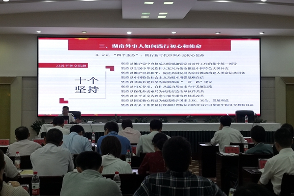 读书班期间,徐正宪主任作了关于“外事人的初心和使命”的主题党课,着重结合我省外事工作实际,对湖南外事工作者如何践行新时代中国外交初心和使命进行了分析探讨。省委党校中共党史研究部主任霍修勇教授从党的奋斗历程为学员们深入解读了中国共产党的初心和使命,启发全办党员干部在中国共产党辉煌历史的激励下,为人民幸福、为民族复兴而不懈奋斗。中国问题研究院美国研究所所长滕建群教授结合当前国际热点事件,分析了大国战略背景下的中美关系,为我省外事系统进一步把握国际形势、做好地方外事工作进行了一次深刻的形势政策教育。