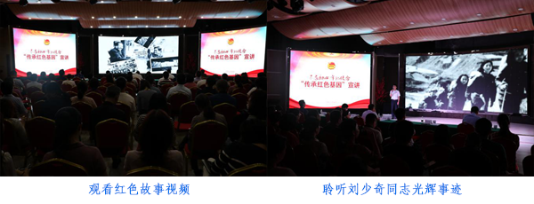 二、开展“传承红色基因”宣讲,思想政治受洗礼。7月9日上午,团省委组织开展“传承红色基因”宣讲会,从红色基因中汲取力量,从革命传统中感悟崇高。宣讲会分为《信仰的力量》和《光辉榜样——刘少奇同志的初心与使命》两个篇章。通过观看团省委、湖南党史陈列馆联合制作的《藏在衣柜里的情》《长征,我的生命之歌》《钢铁硬汉陈树湘》《消失的二十五年》等10个感人至深的红色故事视频并聆听刘少奇同志纪念馆工作人员饱含深情地讲述刘少奇同志为了民族独立和人民解放、为了国家富强和人民幸福不懈奋斗的光辉事迹,团省委全体干部职工的心灵受到极大震撼,思想政治受到深刻洗礼。