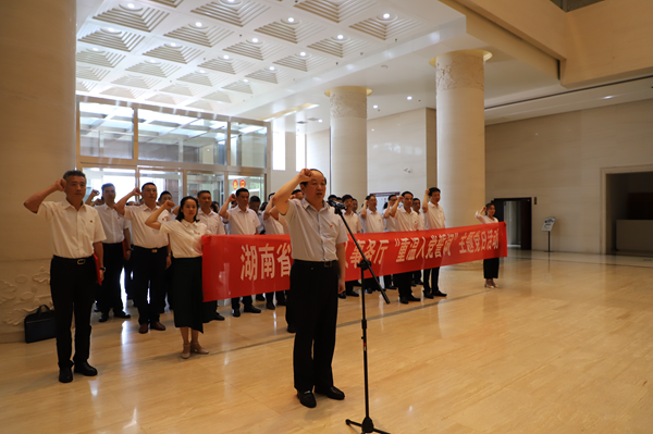 7月11日下午,省退役军人事务厅党组书记、厅长唐勇率在家厅领导及全体党员干部和直属单位班子成员,到湖南党史陈列馆开展红色革命传统教育。省纪委省监委驻省退役军人事务厅纪检监察组同志一同参加。