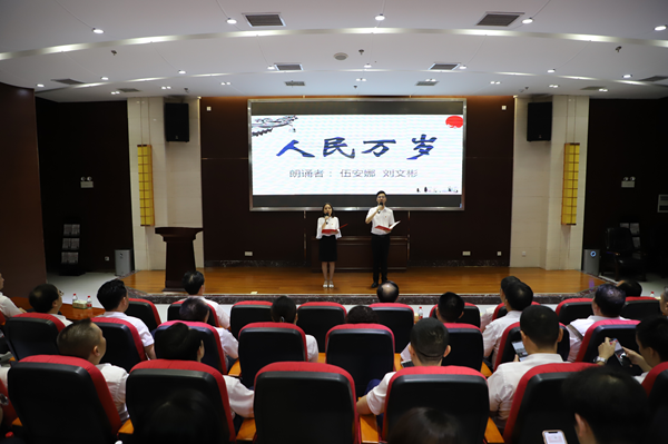 党员干部开展了“重读先烈诗章”主题党日活动,2名党员代表深情朗诵先烈诗章《人民万岁》。