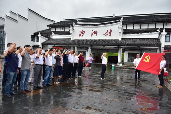 寻着历史的足迹,感受中国工农红军的赤子情怀。全体党员在鲜红的党旗前重温入党誓词,铿锵有力的宣誓声响彻广场;在沙洲村陈列馆驻足观看革命文物、宣传图片,回望红军长征血与火的峥嵘岁月,近距离感受革命先烈为穷苦大众谋幸福和为中华民族得解放奋斗所付出的巨大牺牲。
