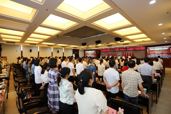 红火七月,党旗飘扬,7月5日下午,省住房和城乡建设厅“七一”表彰暨“不忘初心、牢记使命”专题党课教育隆重举行。厅直机关全体在职党员及入党申请人、厅离退休党总支支委成员及受表彰对象共190余人参加会议。党组副书记、副厅长舒行钢主持会议。